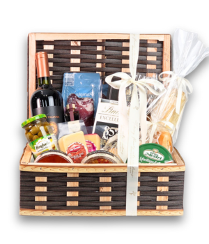 Cesta Com Pães, Queijos e Vinho – Delícias Italianas