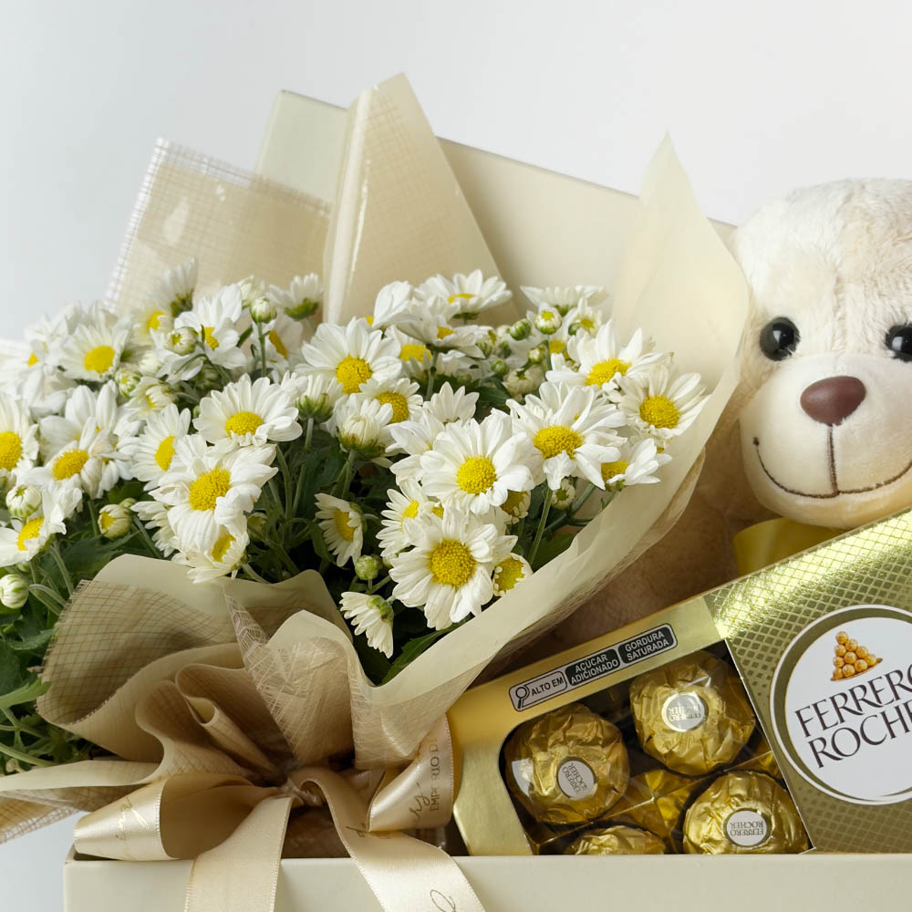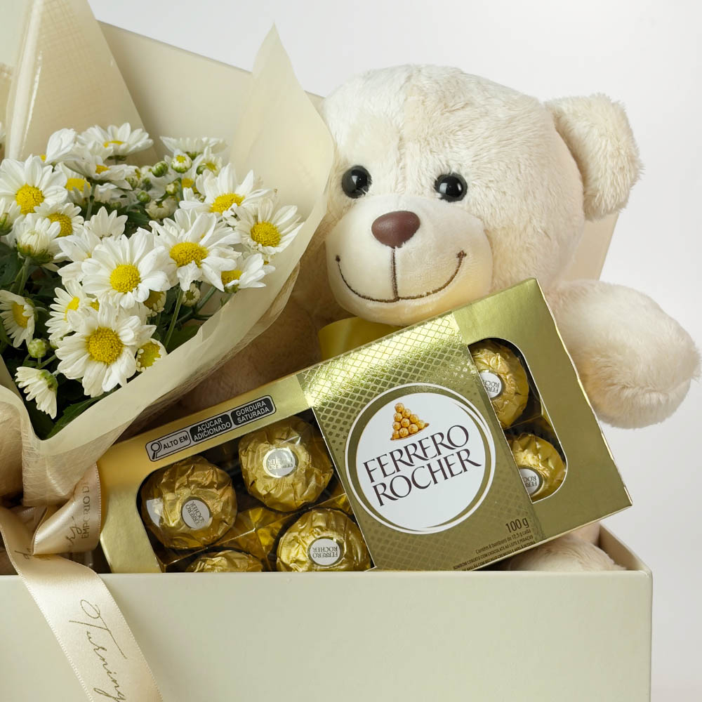 Caixa Com Pelúcia, Flores e Chocolates – Teddy
