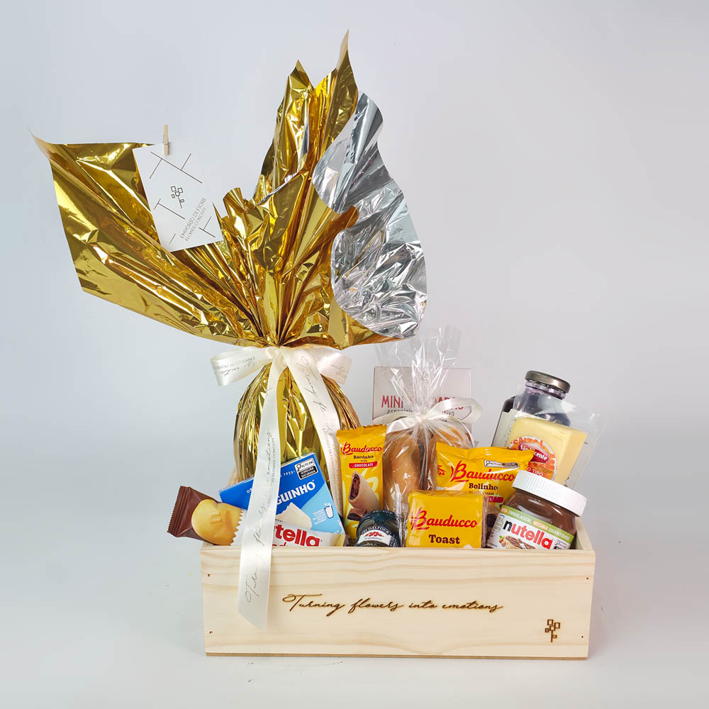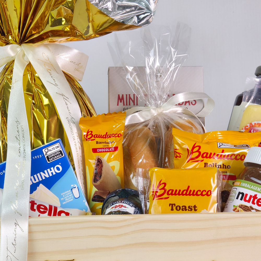Surpreenda nesta Páscoa com uma cesta sofisticada e cheia de carinho! Esta linda composição em caixa de madeira traz um delicioso ovo de Páscoa, o clássico Ferrero Rocher, chocolates Lindt Lindor e uma charmosa pelúcia de coelhinho, criando um presente irresistível que encanta em todos os detalhes.